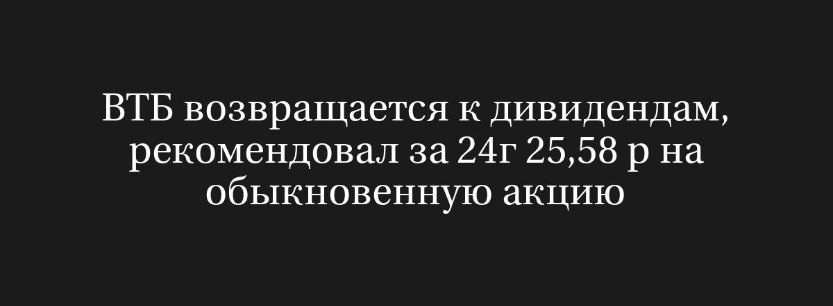 «В 2024 году группа ВТБ превысила целевые показатели, установленные стратегией по прибыли и числу активных розничных клиентов. В связи с этим Наблюдательный совет решил поддержать предложение руководства ВТБ и рекомендовать выплату дивидендов за 2024 год — на год раньше, чем изначально предполагалось», — отметил президент и председатель правления ВТБ Андрей Костин, слова которого указаны в пресс-релизе.