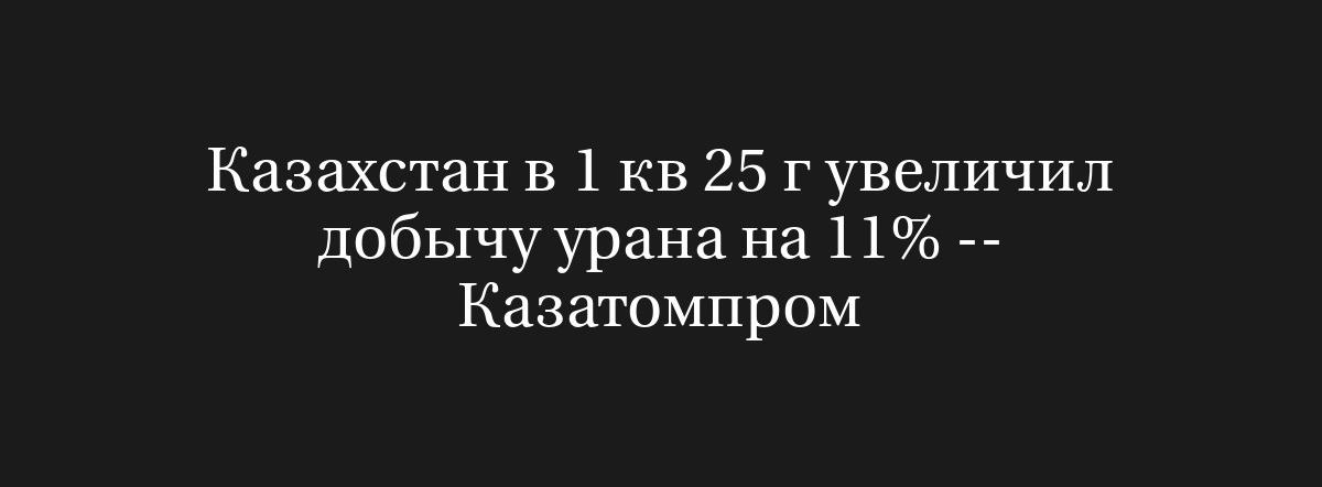 АЛМА-АТА, 2 мая (Рейтер) – крупнейший производитель урана в мире, компания Казатомпром, объявила в пятницу, что в первом квартале 2025 года Казахстан увеличил добычу урана на 11% по сравнению с аналогичным периодом прошлого года, достигнув 5.633 тонны.