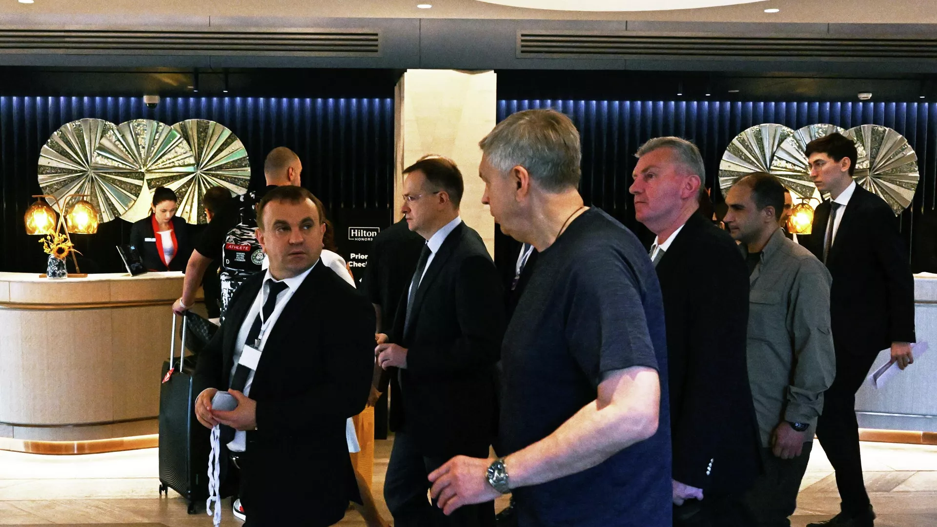 Российская делегация возвращается в отель перед важными переговорами в Стамбуле