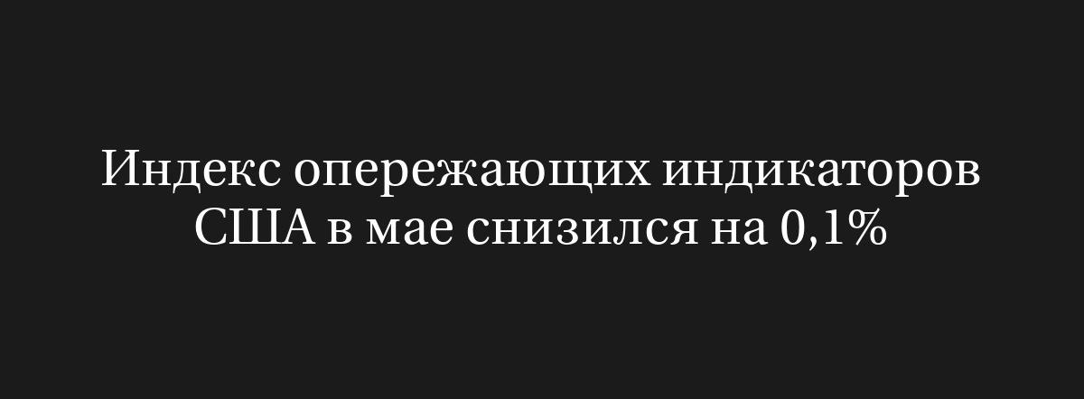 20 июня (Рейтер) – В мае индекс опережающих экономических индикаторов в США снизился на 0,1% по сравнению с апрелем, как передало в пятницу частное исследовательское учреждение Conference Board.