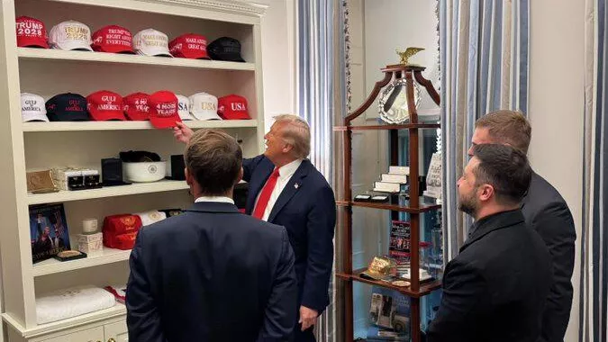 Трамп удивил Зеленского и Макрона необычной коллекцией кепок во время встречи в Белом доме