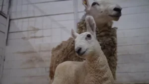 Маленький чудо-ягненок бордер-лейстер появился на свет в сказочной вотчине Деда Мороза