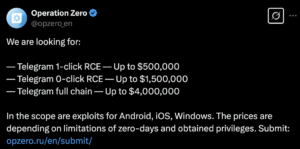 Российская компания по продаже нулевых уязвимостей увеличивает ставки: до $4 миллионов за эксплойты Telegram