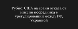 Рубио: США рассматривают отказ от посредничества в мирных переговорах между Россией и Украиной в ближайшие дни