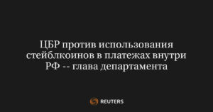МОСКВА, 11 декабря (Рейтер) – Директор департамента инфраструктуры финансового рынка Банка России Кирилл Пронин отметил, что стейблкоины выглядят более приемлемыми...