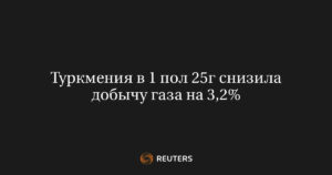 АШХАБАД, 19 сентября (Рейтер) – Туркменистан, являясь ведущим производителем природного газа в Центральной Азии, сократил объем добычи на 3,2% в...