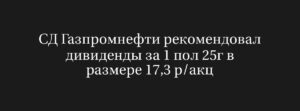 Газпромнефть предложила дивиденды за первое полугодие 2025 года: 17,3 рубля на акцию несмотря на падение прибыли