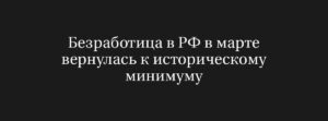 МОСКВА, 30 апреля (Рейтер) – В марте уровень безработицы в России вновь достиг исторического минимума, составив 1,73 миллиона человек, что...